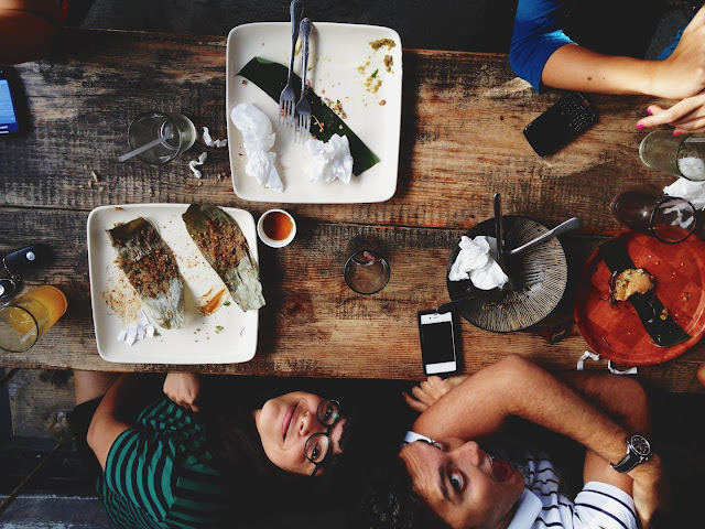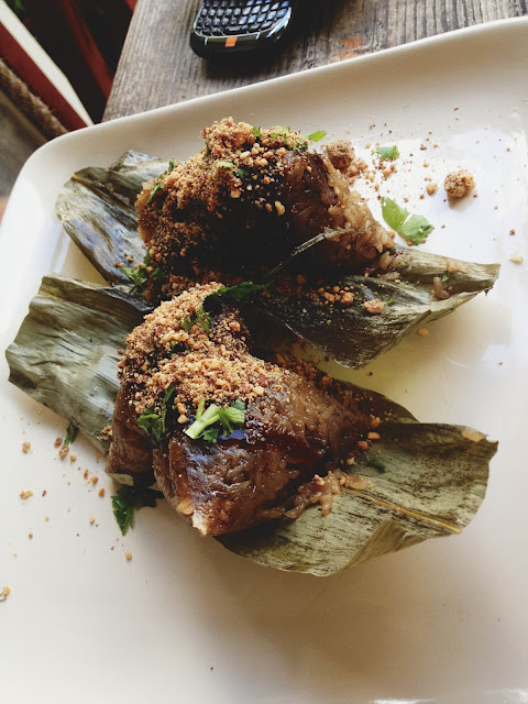Tamales de arroz, cocinados en hojas de bamboo, con hongos shitake, cilantro y maní. Una buena selección hecha por mi amiga Vikki. (Siempre pruebo los platos de mis amigos porque sharing is caring) Este es el “Vietnamese Roll”, envuelto en papel de arroz, relleno de repollo morado, zanahorias, pepino, soy chunks, salami de soya, maní en polvo y salsa de tamarindo, a compañado de salsa verde picante. Este lo pedí yo y me lo comí todo. A la derecha está el plato de Luis, la pasta Teriyaki, acompañado de zanahorias, repollo morado, pepino y hongos shitake. Fue una buena tarde. |
