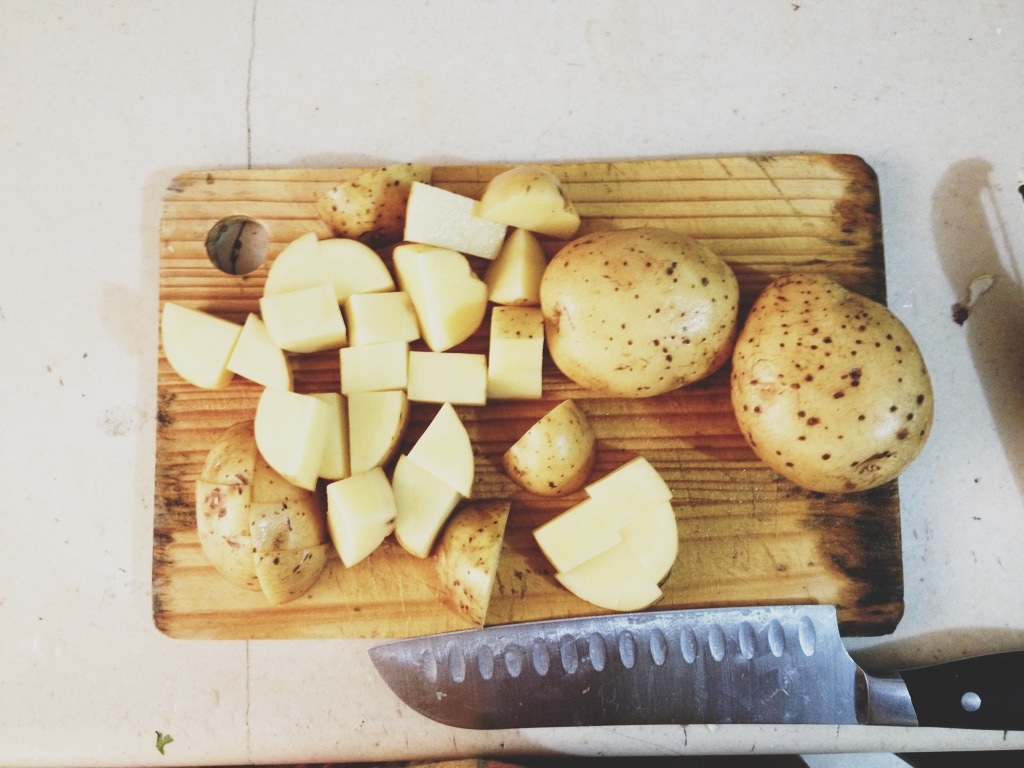 - 4 papas medianas cortadas en cubos (cáscara opcional) a mí me gusta dejarselas, porque soy vaga y prefiero lavarlas bien a pelarlas, pero ya eso es algo personal.