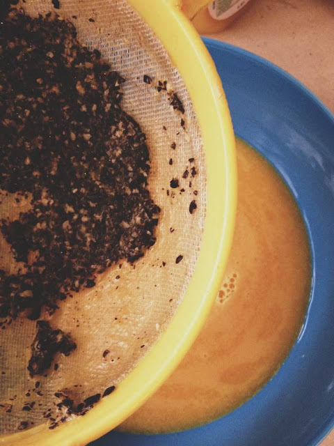 Sacar el jugo, y colar las semillas: