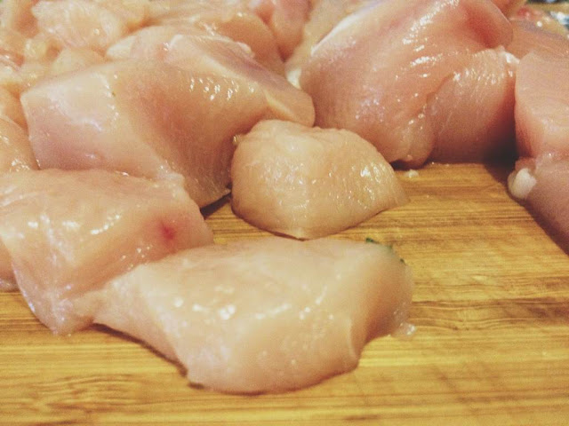 - 1 pechuga de pollo grande (cortada en cubitos o tiras)