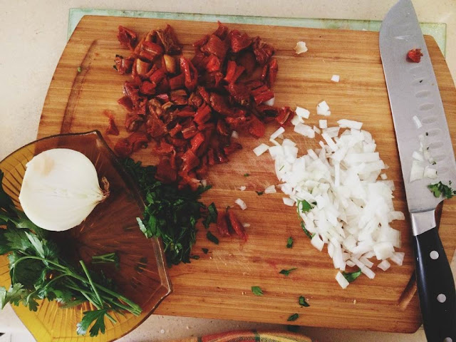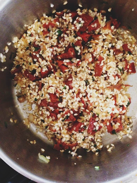 Amo, amo, amo los tomates! y estos siempre tienen un sabor mucho más intenso que los tomates normales, esto me encanta ya que puedo inventar cosas diferentes, como hummus con tomates deshidratados (¡bastante rico que me quedó!) y este risotto que hice hoy, que me ha salido de pura inspiración.