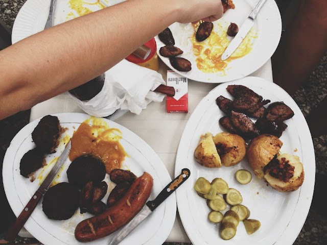 Nuestro sábado alemán estuvo repleto de cuentos, chistes, Paulaners, Quisqueyas, albóndigas extrañas pero con estupendo sabor, palitos cerveceros, chorizo, frankfurt, papas, pepinillos y como olvidar la excelente mostaza casera que tienen, yo como amante fiel de la mostaza me quedé totalmente enamorada de ambas, la picante y la dulce.