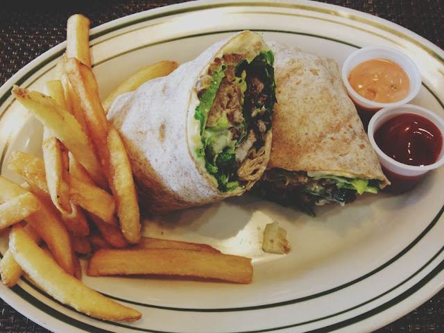 El menú es amplio con bastante opciones de las cuales elegir, decidimos entre la ensalada Tex-Mex (hecho wrap) y el wrap de Filete Asado, aquí algunas fotos de nuestro almuerzo.
