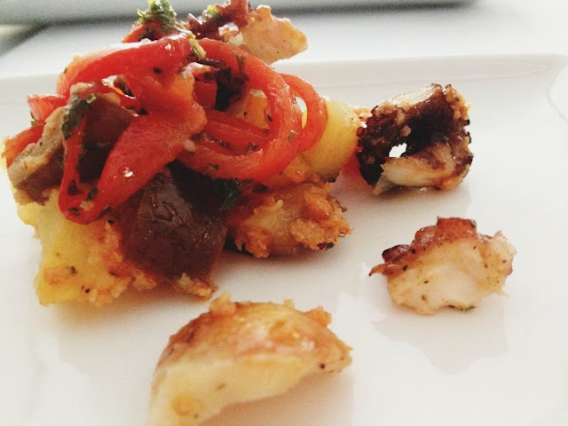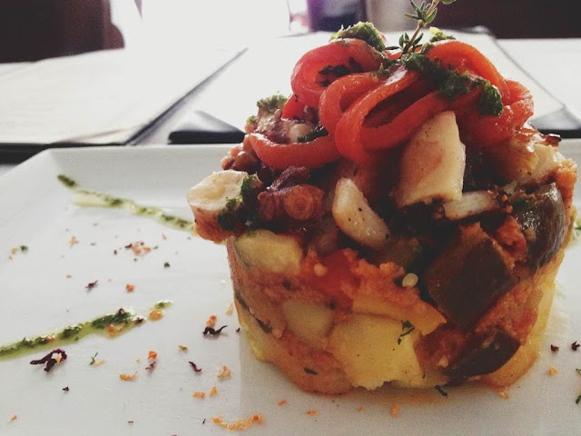 El Pulpito al grill es una entrada que también sirve de plato fuerte si quieres comer algo “ligero”, viene sobre una cama de papas y ratatouille. Excelente mezcla de sabores y buena presentación.
