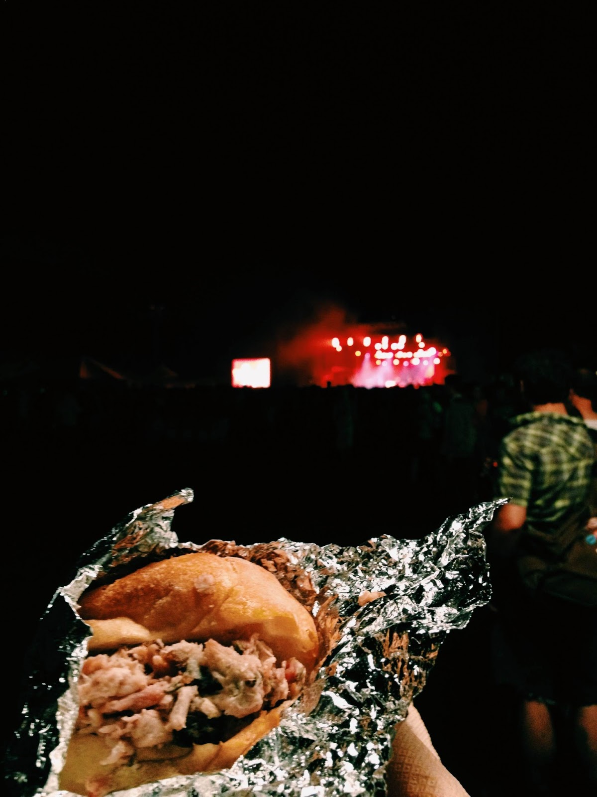 Fue el PEOR día para un festival, estuvo lloviendo TODO el día hasta la noche, muchas bandas tuvieron que cancelar, incluyendo una de mis cantantes favoritas la cual yo estaba MUY emocionada por ver: Feist. A pesar de tener una gripe que me estaba casi matando (y bajo la lluvia), fui a probar un Food Truck que me encanta muchísimo, Korilla BBQ.