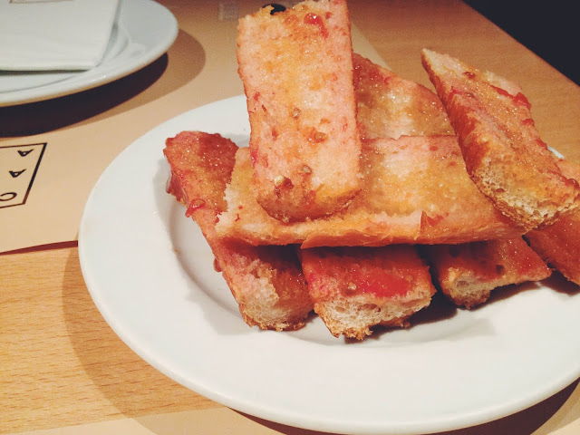 Empezamos por Cerveseria Catalana, un restaurante de tapas y cervezas importadas. Decidí empezar con lo más típico: cerveza y Pa amb tomàquet (pan con tomate).