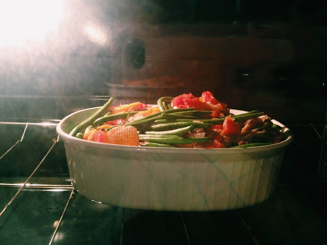 Esto se va a cocinar a fuego lento, cuando este a punto de hervir, llevarlo al horno (sin tapar) por 1 hora y media, hasta que la carne este bien suave.